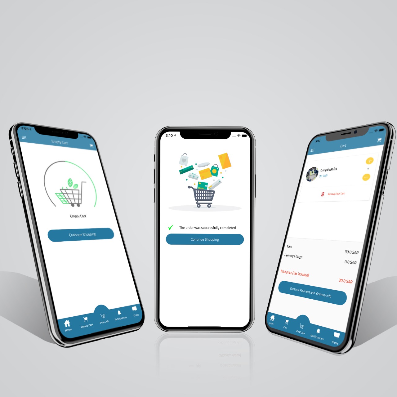 - تنقل بسيط:شريط سفلي للوصول السريع إلى الرئيسية، السلة، الإشعارات، والوظائف الأساسية.